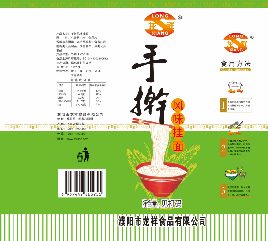 濮陽市龍祥食品有限公司位于河南省濮陽縣戶部寨鎮小濮州,始建于1994年,前期投資200萬元,經過幾年的努力,大力開發(fā)市場,由于市場的需求量急劇上升,出現供不應求,于2004年擴建,建成一座新型的現代化面粉加工企業(yè),并擁有全國先進全自動生產設備一套,產量由以前的100噸/天,提高到現在400噸/天。 2012年再次擴大規(guī)模申請為濮陽市龍祥食品有限公司,注冊資金500萬元。2012年又投資800萬元新建掛面生產線一條,日產掛面50噸。龍祥食品有限公司現有職工120余人,總工程師1人,專業(yè)技術人員10人,經濟師1人,會計師1人,銷售人員2人,優(yōu)秀專業(yè)人員20余人。 龍祥公司自創(chuàng)建以來,社會效益十分可觀。公司一直以“今天的質量,明天的市場”為信念,“一切為了客戶需求,竭誠追求完美品質”為企業(yè)宗旨,走專業(yè)化經營和職業(yè)化管理的路子。